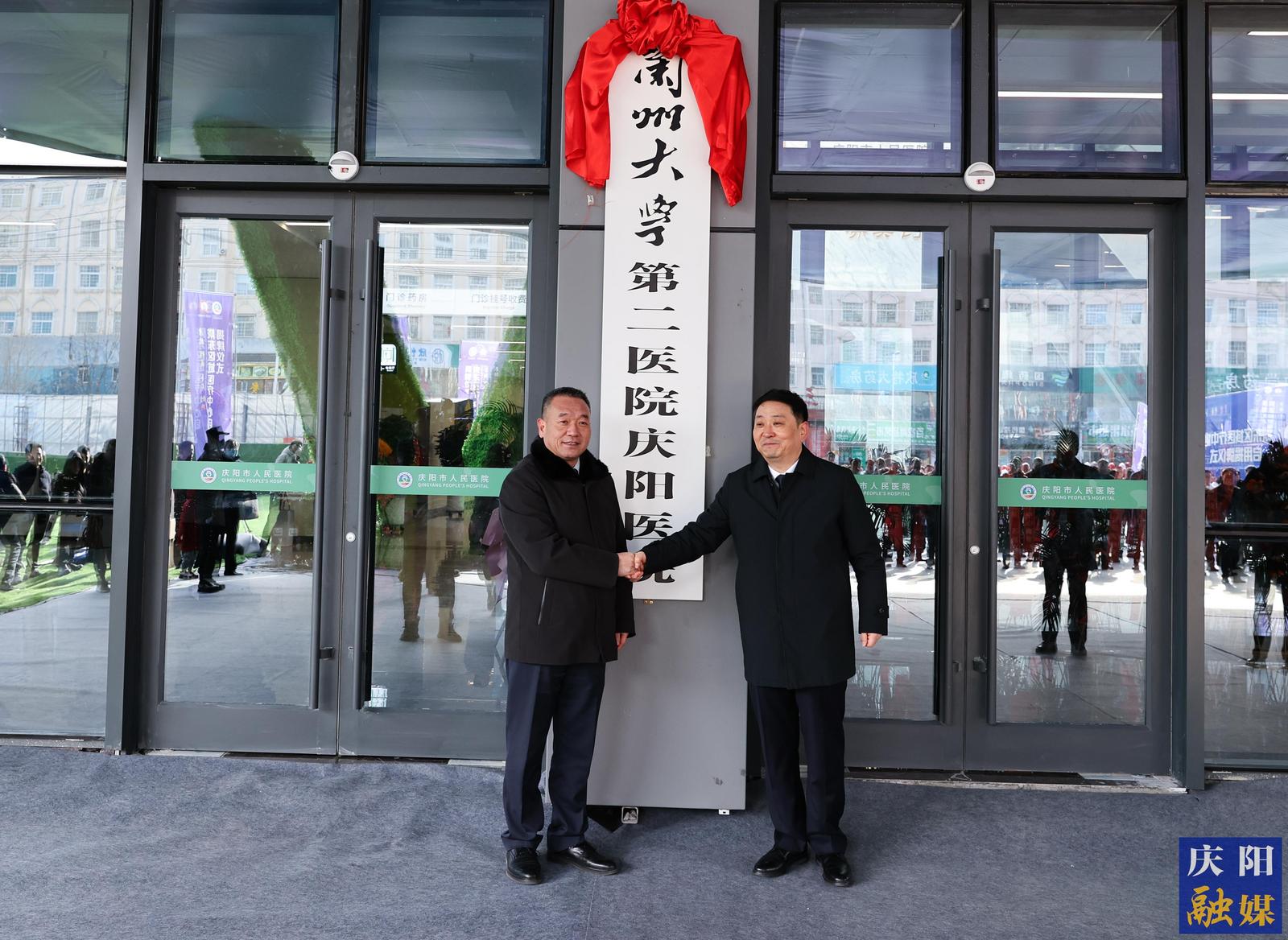市委书记黄泽元与省卫生健康委副主任李清霞共同为“甘肃省陇东区域医疗中心”揭牌;市委副书记、市长周继军讲话,并与兰大二院党委书记杨建文共同为“兰州大学第二医院庆阳医院”揭牌。市领导赵立新、李隆基、迭目江腾、张鸿举及刘选明出席,史建芳主持。