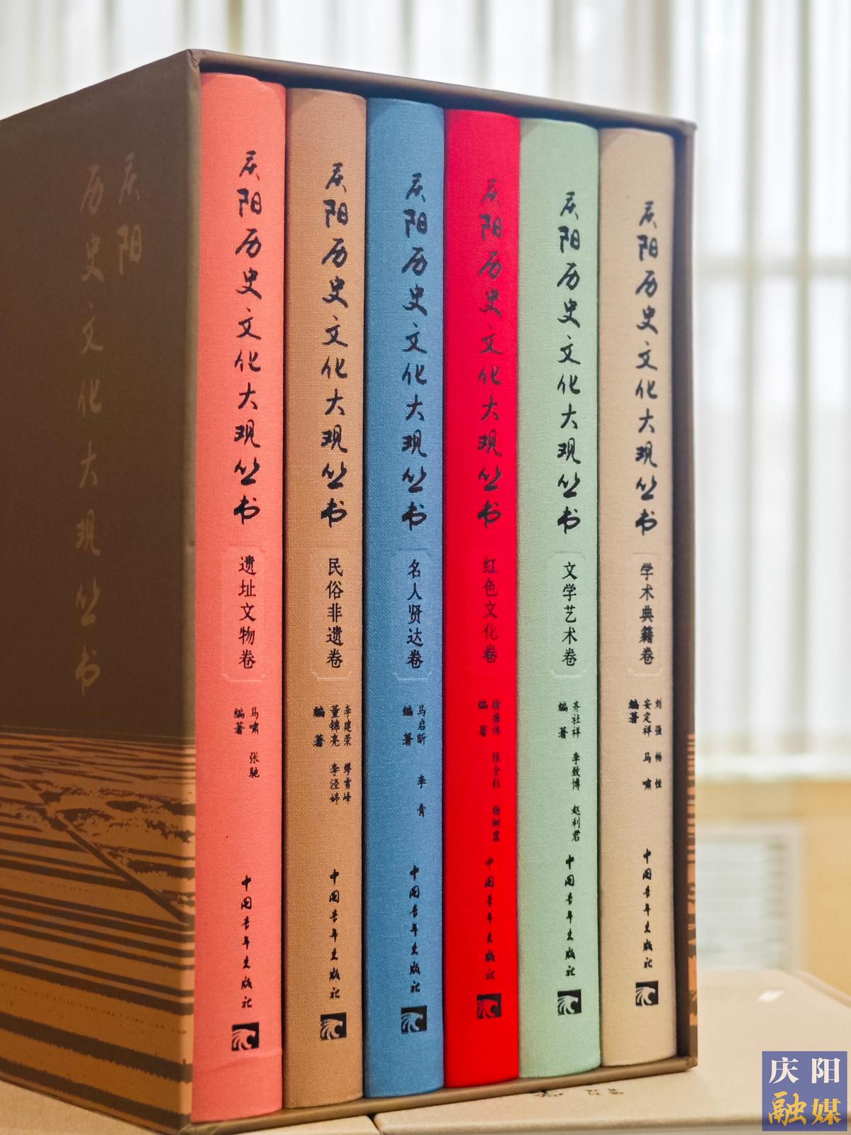 《庆阳历史文化大观丛书》编纂工作于2023年4月全面启动,历时2年零1个月,由中国青年出版总社出版发行。丛书分遗址文物卷、民俗非遗卷、名人贤达卷、红色文化卷、文学艺术卷和学术典籍卷,共140余万字,是首部反映庆阳历史文化整体概貌、展示庆阳文化成果、展现庆阳文明气象的权威著作。